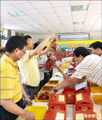 評審依糯米糍荔枝平均單果重、單串果粒數、果實外觀、肉質風味口感、糖度及小核率等項目進行果品評鑑,今年參賽荔枝甜度高,平均糖度都超過十九度,不過大核率較往年明顯增加。