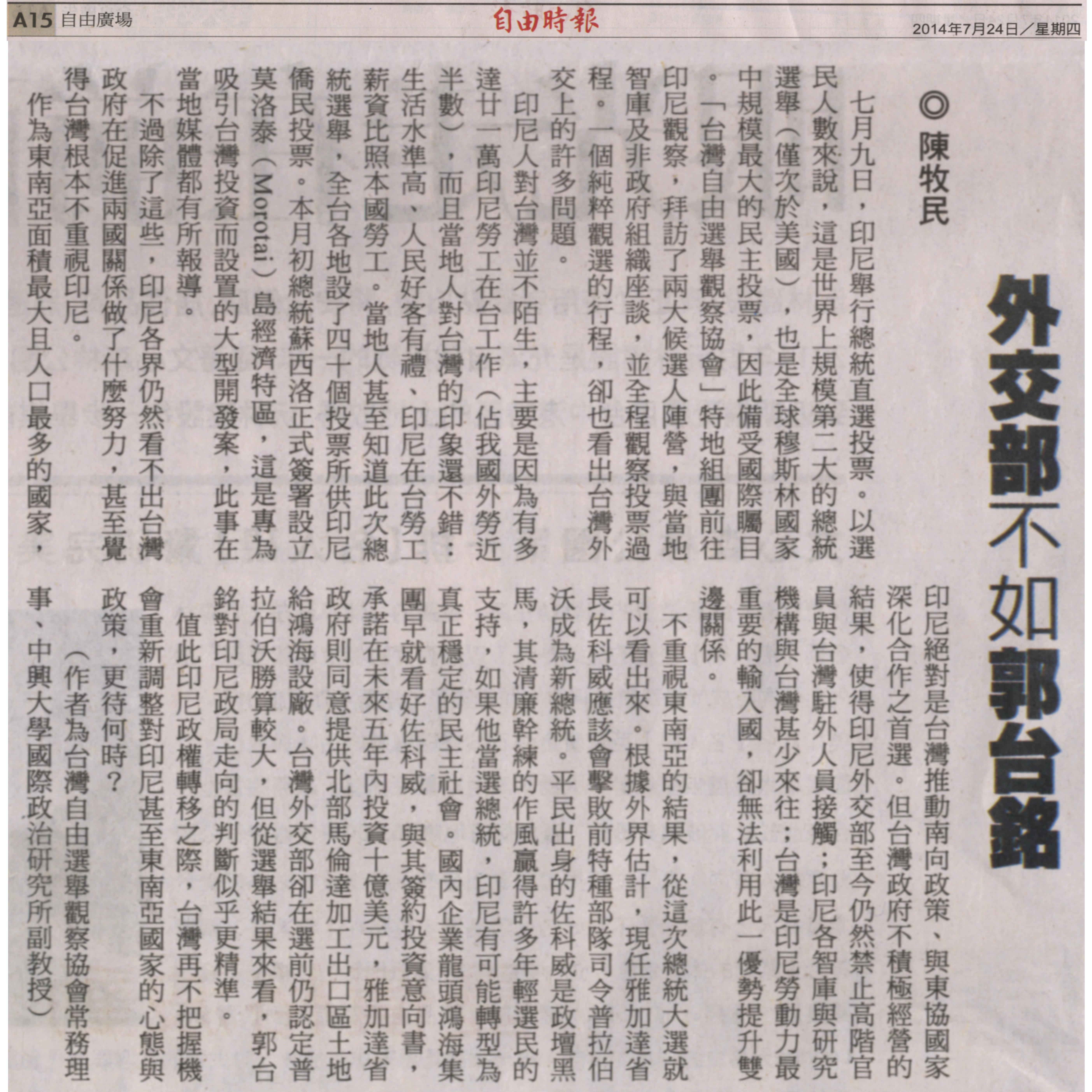 稿源:2014-07-24/自由時報/A15/陳牧民/中興大學國際政治研究所副教授