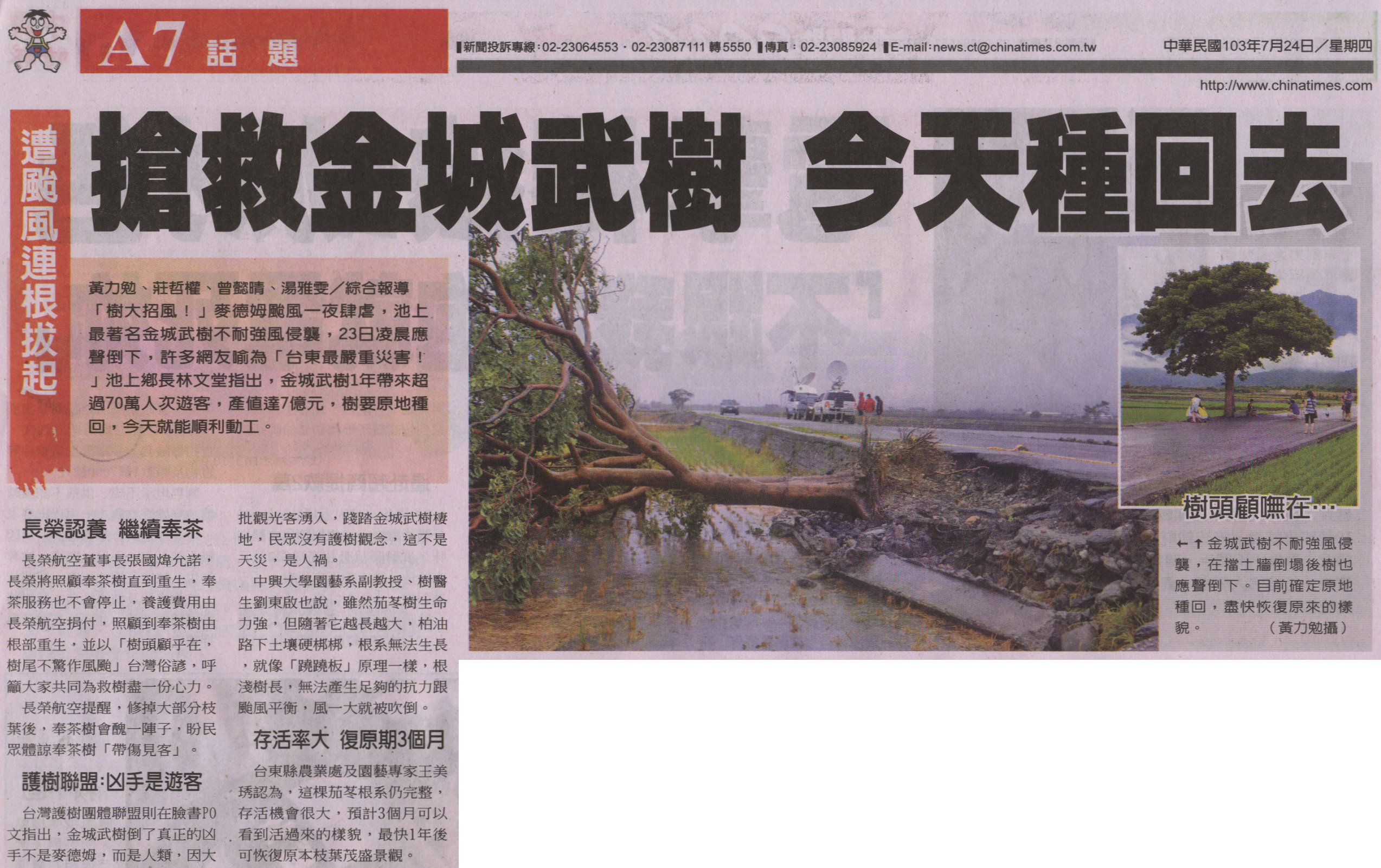 遭颱風連根拔起 搶救金城武樹 今天種回去