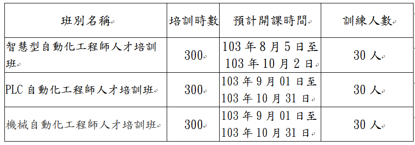 興大自102年即開辦智慧型自動化相關培訓課程,共開設「機械自動化工程師人才培訓班」及「PLC電控工程師人才培訓班」兩個職前訓練班,學員就業率分別達到68%和80%。今年度更擴大實行,在舊有基礎上進行調整精進,使課程規畫更為完善,師資陣容也加入修平科技大學、興大附農、工研院等學術研究界的優秀師資,而為增強與產業界關聯,更邀請多位業界師資加入此次課程。