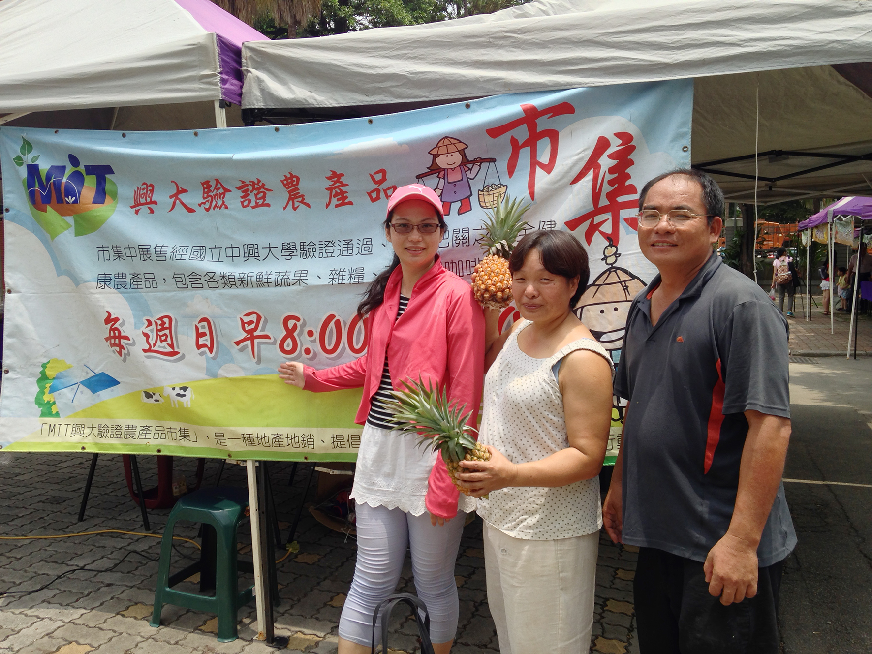 MIT興大驗證農產品市集每週日上午8到12點在興大小禮堂前廣場設攤,目前共有20個攤位,以蔬菜水果為主,也有豆製品。市集每週皆會辦理講座,由農民分享農事經驗、有機栽種技術、食農教育,或是消費者分享環保生活等。