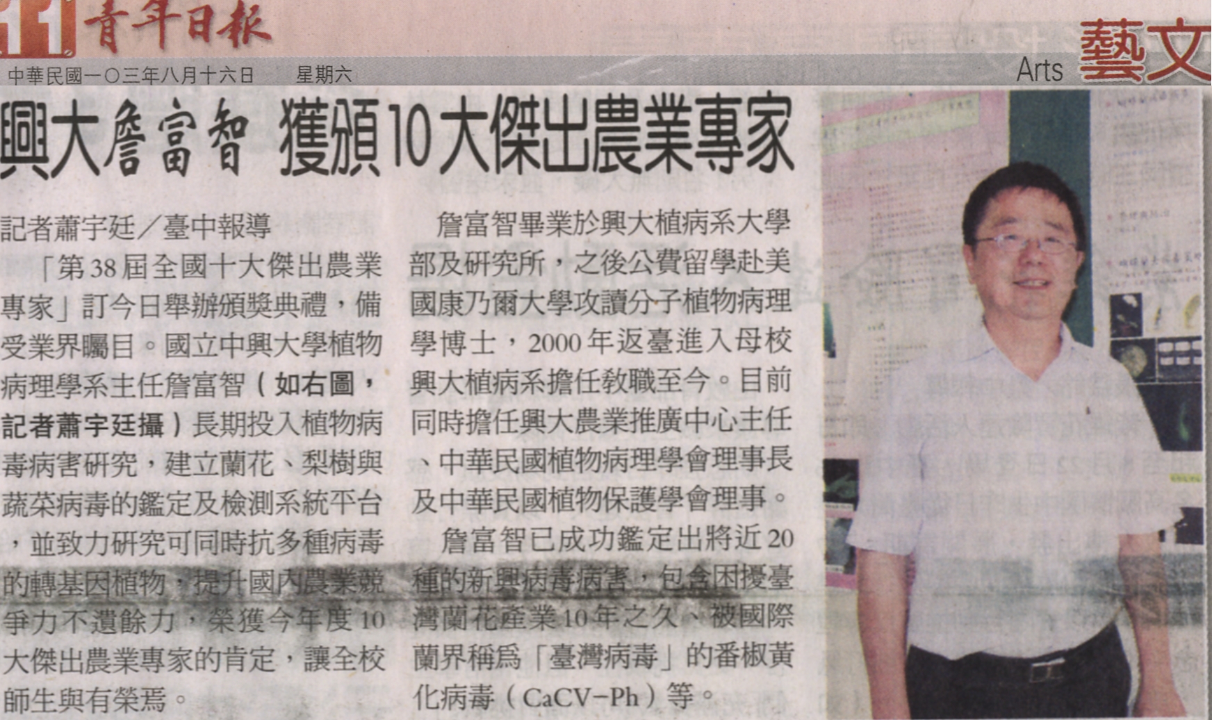 【媒體報導】興大詹富智 獲頒10大傑出農業專家