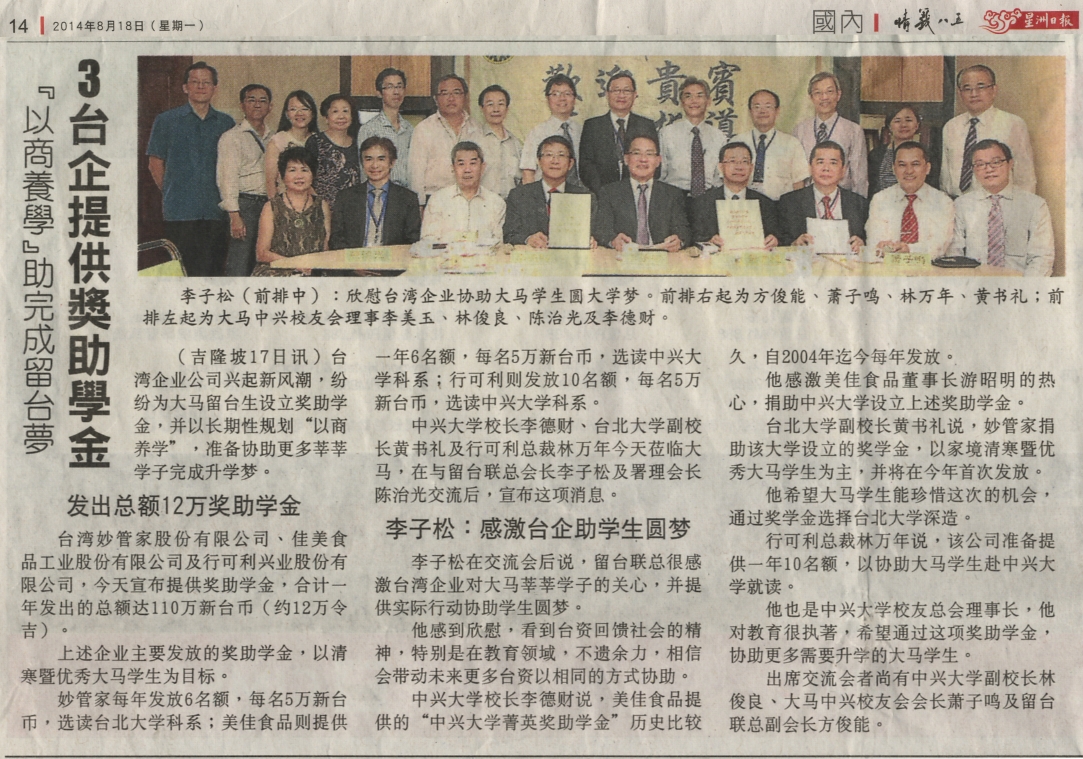 【媒體報導】3台企提供獎助學金 『以商養學』助完成留台夢