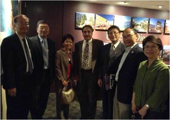11日晚間,李校長出席由科技組安排之聖地牙哥地區人士歡迎晚宴,中央研究院錢煦院士、莊明哲院士、南加州中興大學校友會會長徐新宏、北美洲台灣人教授協會(NATPA-SCC)許宗邦副會長及陳榮昌教授、昶安生物科技公司總裁賴正光、聖地牙哥中華科工聯誼會會長謝家樹,以及多位UCSD台裔教授、研究學者與聖地牙哥等當地專業人士,約90人共同參與當日晚宴。