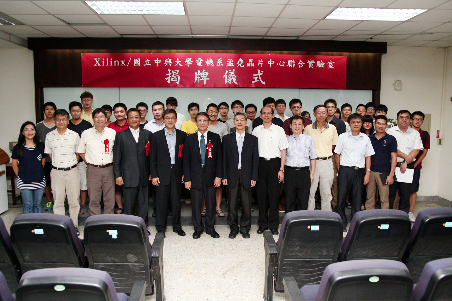 由國立中興大學電機系與美國晶片設計大廠賽靈思(Xilinx)公司合作成立聯合實驗室,9月22日下午由興大校長李德財、美商賽靈思台灣區總經理王漢傑、一元素科技公司董事長吳志偉,共同為「Xilinx/中興大學電機系孟堯晶片中心聯合實驗室」啟用揭牌,興大工學院院長薛富盛、電機系主任歐陽彥杰與孟堯晶片中心主任賴永康以及多位貴賓、師生皆出席與會,期許為國內培育IC設計人才。