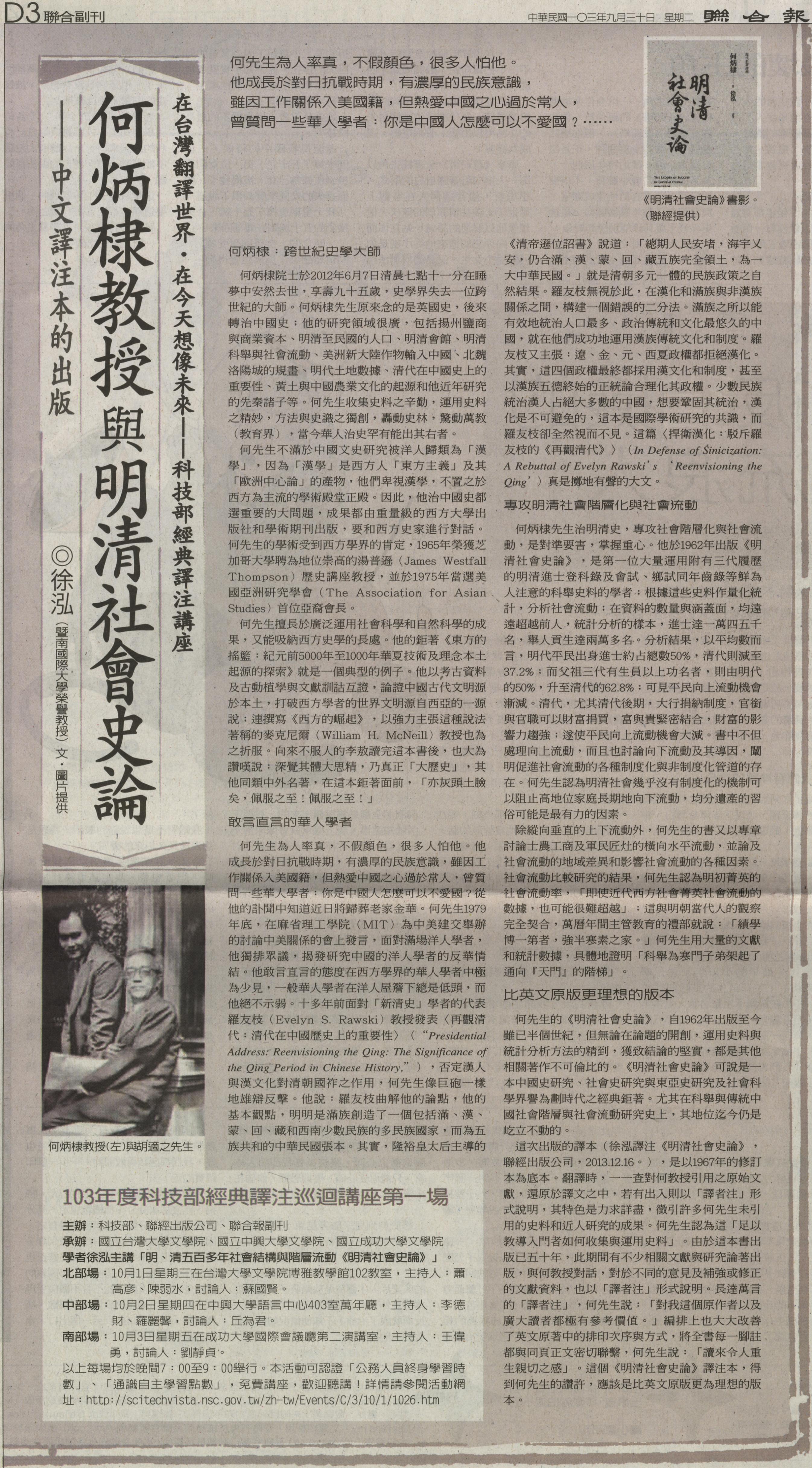 稿源:2014-09-30/聯合報/D3/聯合副刊/徐泓/暨南國際大學榮譽教授