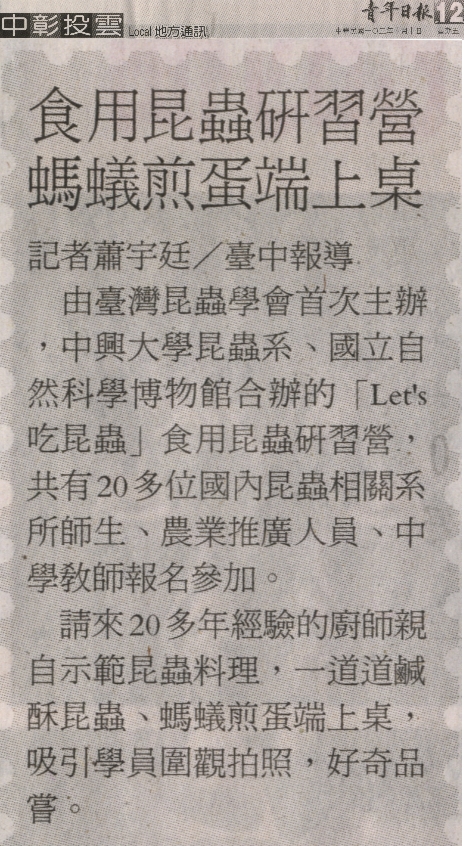 【媒體報導】用昆蟲研習營 螞蟻煎蛋端上桌