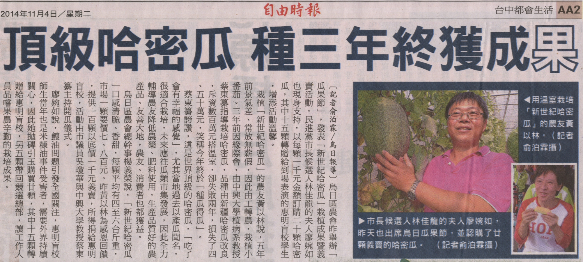 【媒體報導】烏日頂級哈密瓜 種3年終獲成「果」