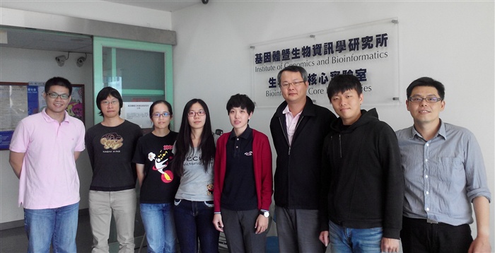 中興大學基因體暨生物資訊學研究所侯明宏教授(右3)與研究團隊合影。 (記者蕭宇廷攝)