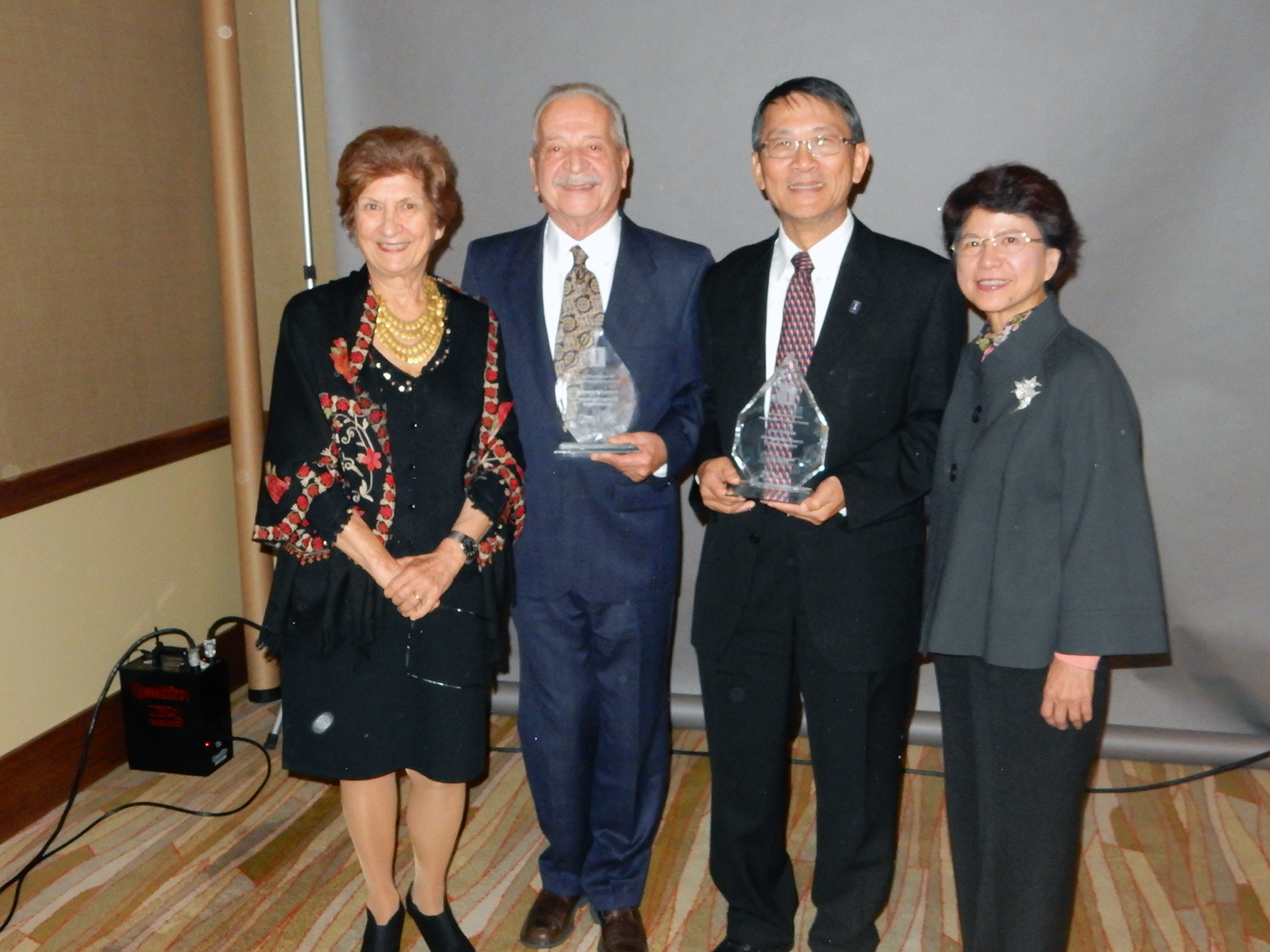 李德財校長 (右2)獲頒伊利諾大學電腦科學系「傑出教育家獎」,李校長碩博士指導教授Franco P. Preparata (左2)也榮獲同獎項,兩人闊別36年,再度於母系的頒獎典禮上同台領獎。