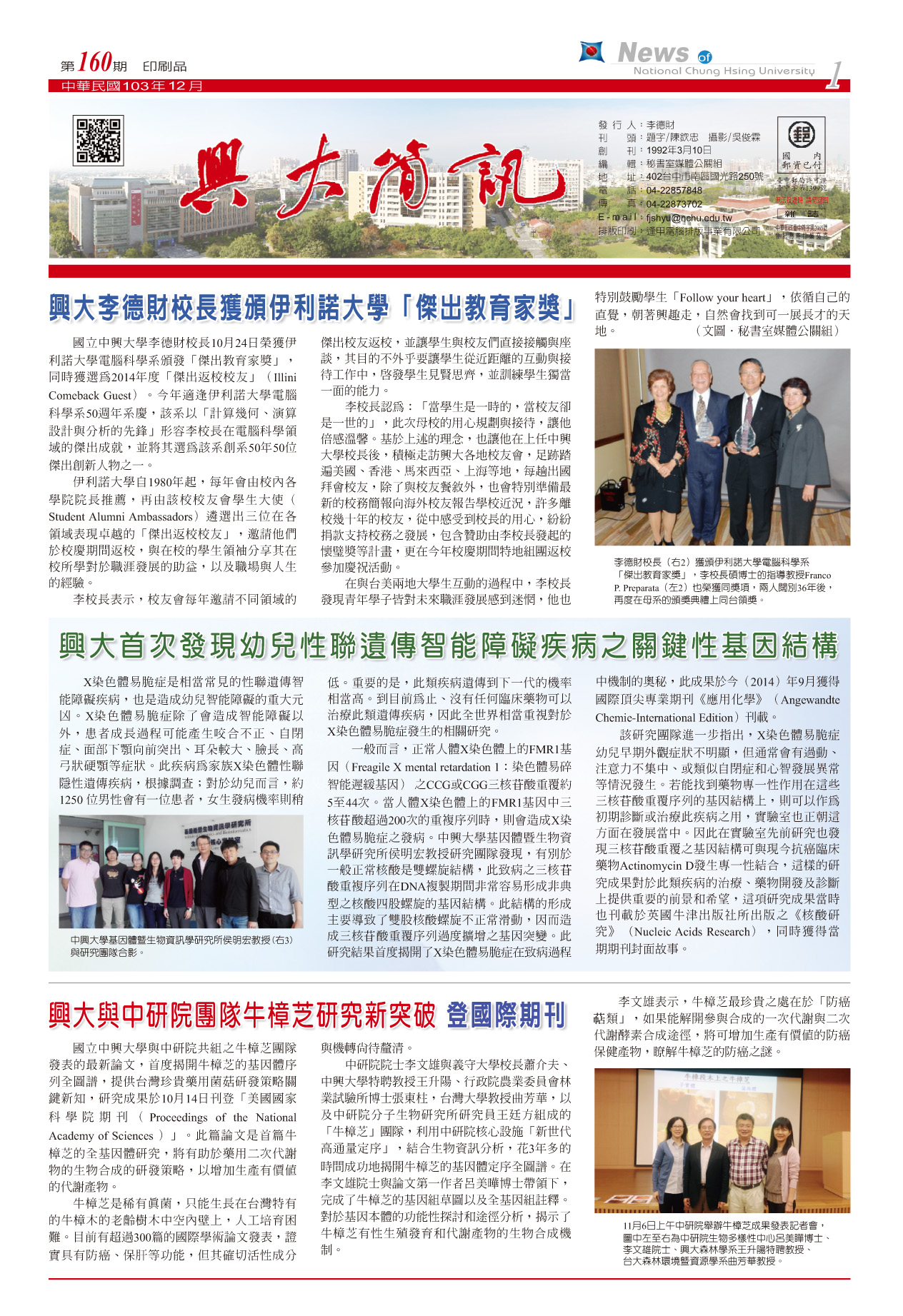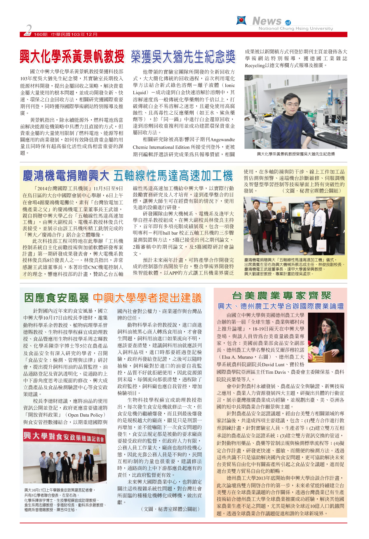 《興大簡訊》第160期(103年12月)已出刊,歡迎瀏覽轉載。