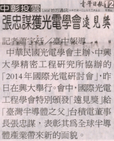 【媒體報導】張忠謀獲光電學會遠見獎