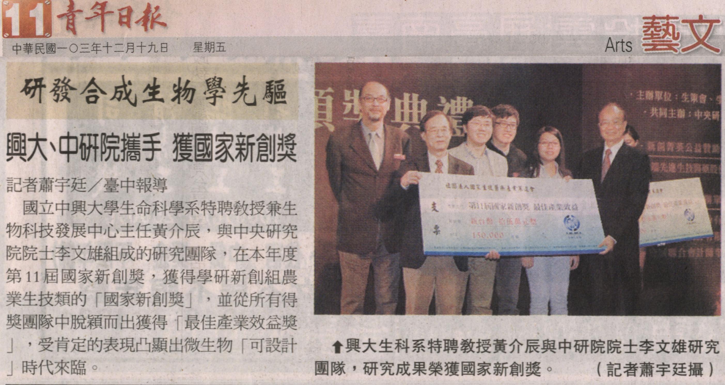 【媒體報導】興大、中研院攜手 獲國家新創獎