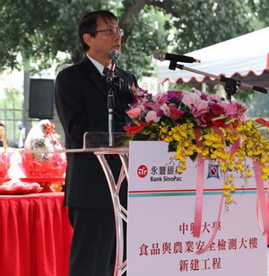 興大校長李德財表示,這棟大樓創下兩個第一的紀錄,第一這是國內第一所功能齊全且技術領先的食品與農業安全檢測大樓,第二這是興大首次接受企業界實體捐贈。李校長提到,這幾年來台灣的食品安全問題層出不窮,從前幾年的毒奶粉、塑化劑、瘦肉精、毒醬油、毒澱粉,到最近的工業油混食用油及餿水油等事件,在在嚴重打擊消費者信心,中興大學具有全國農業生物科技研究頂尖之優勢,在維護食品安全方面,自應肩負更多的社會責任。