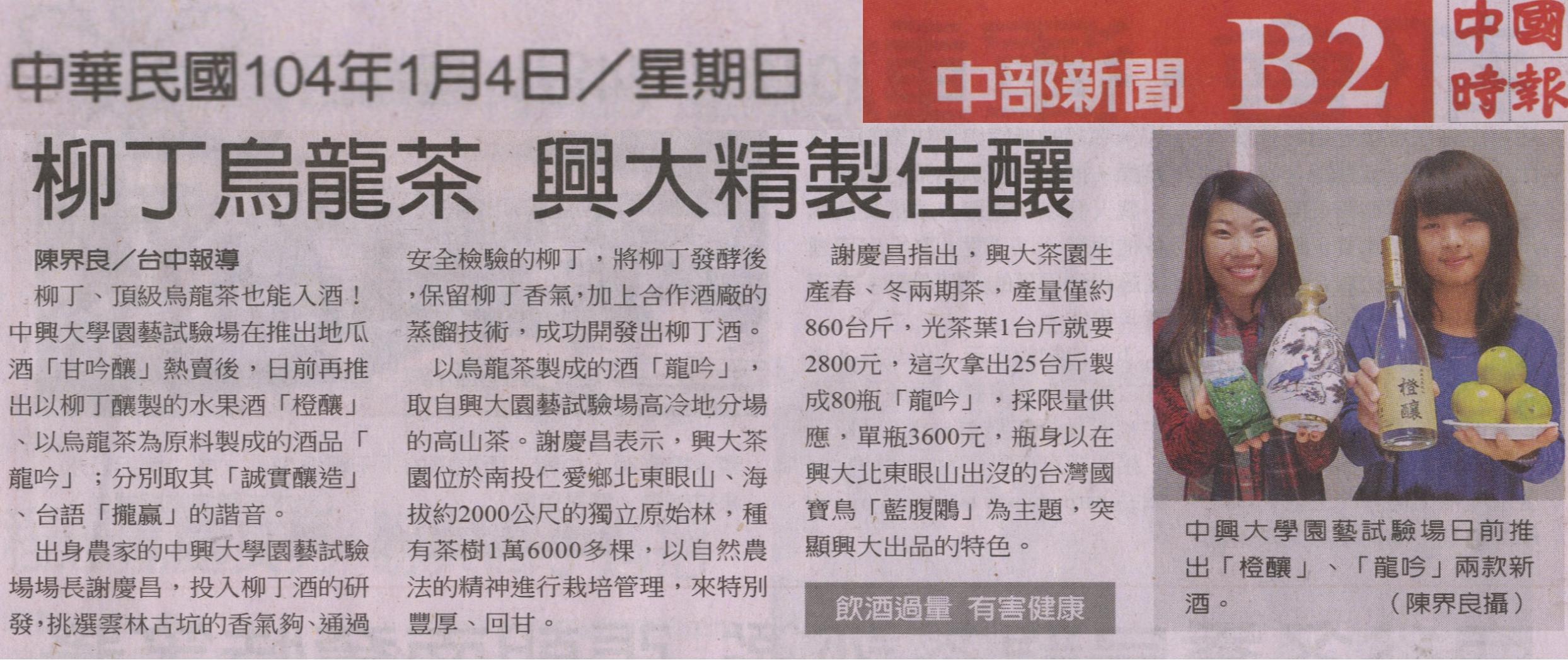 【媒體報導】柳丁烏龍茶 興大精製佳釀