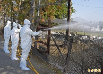 謝快樂說,鴨鵝都是開放式飼養,因此疫情才失控,現在處理鴨和鵝的人員及車輛、工具都得消毒,以免病毒藉此繼續散播。這次都是高病原性病毒,帶病毒禽鳥一坨糞便可能有十的八次方病毒量,只要十的三次方就會染病,禽場水池內有許多糞便,現在更千萬不可放水,死鴨鵝也不能隨意棄置河流,以免污染到其他禽場。