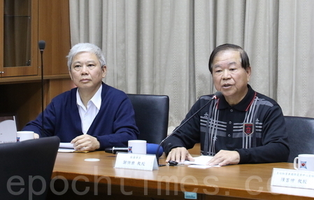興大獸醫學院前院長謝快樂(右)指出,「不接觸禽鳥,充分熟食,就無感染風險,它不像H5N1病毒,依現有資料,H5N8並不會感染人,被認為是一個低公共衛生風險的病毒。」(黃玉燕/大紀元) |