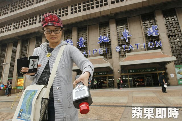 輻射走調團召集人林瑞珠說,該調查採用原能會校正過的儀器「SURVEY METER」,每處測量三至五次。《蘋果》本月五日與林瑞珠再到台北車站實測,偵測到的輻射值也有零點一三二微西弗,比環境背景標準值零點零七微西弗要高出近一倍。