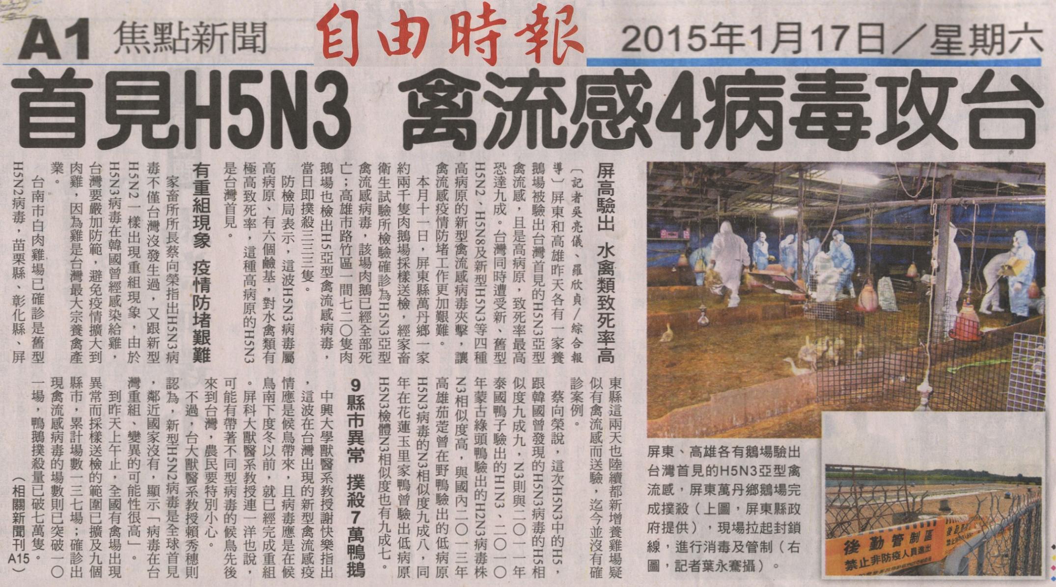 家畜所所長蔡向榮指出H5N3病毒不僅台灣沒發生過,又跟新型H5N2一樣出現重組現象,由於H5N3病毒在韓國曾經感染給雞,台灣要嚴加防範,避免疫情擴大到肉雞,因為雞是台灣最大宗養禽產業。