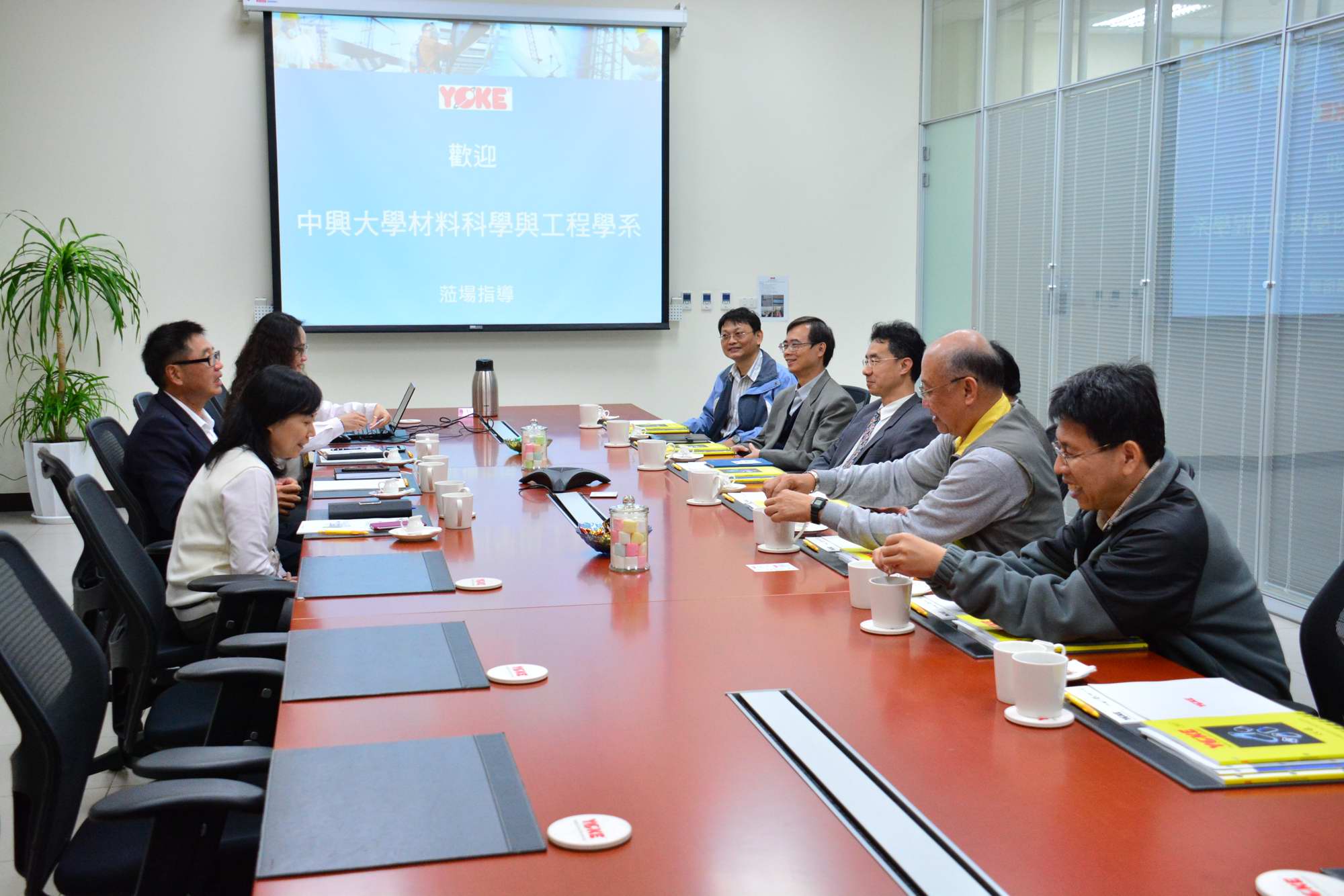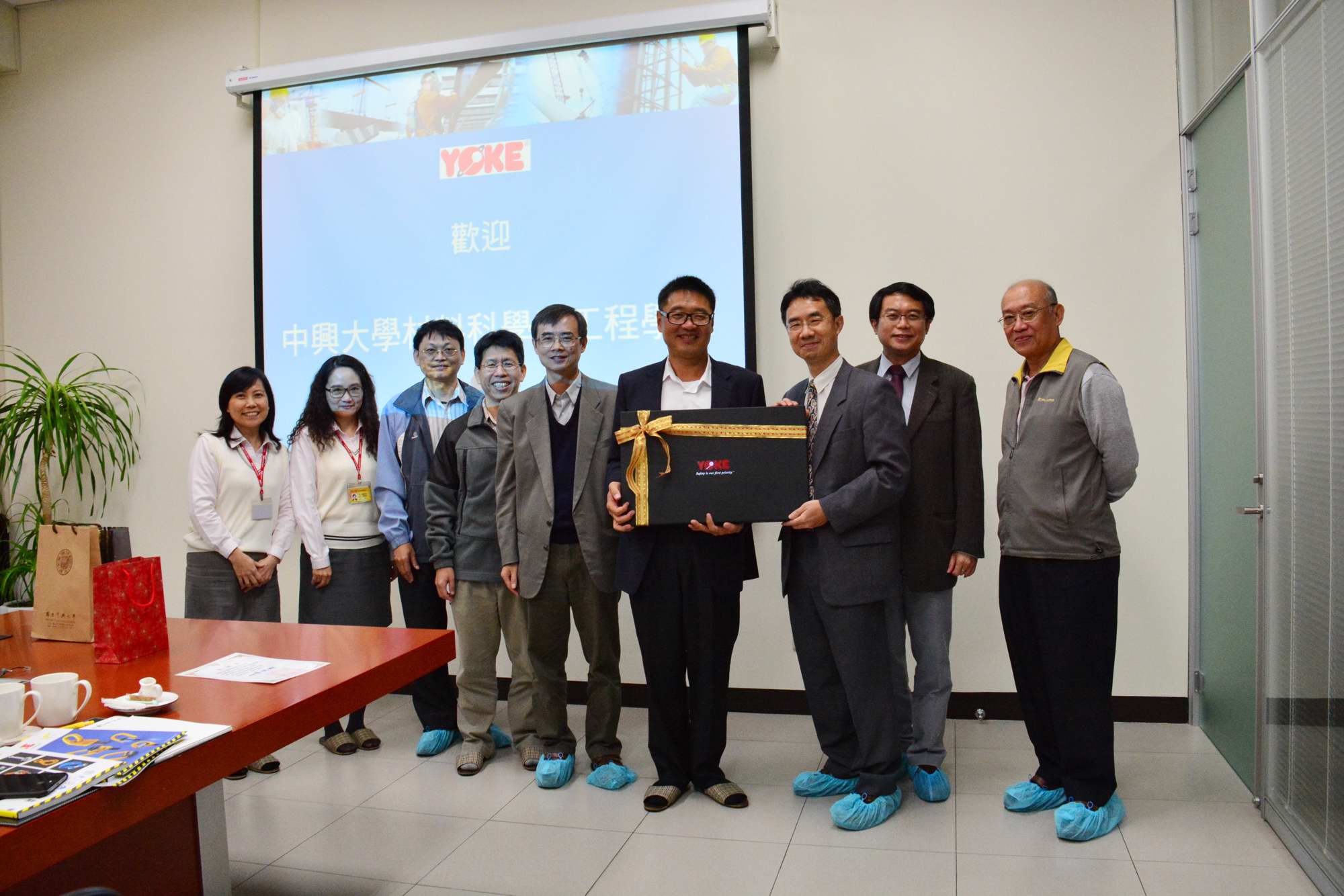 中興大學材料系系主任曾文甲、材料系教授兼教務長呂福興及材料系老師拜訪振鋒公司。興大材料系曾主任及呂教務長致贈振鋒公司感謝狀。