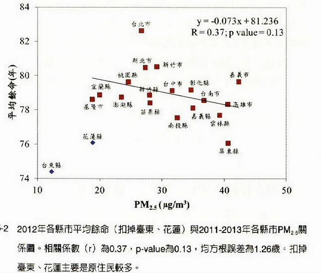 1980年後,工廠逐漸移出台北市,首善之都把工業廢氣移轉到其他縣市,目前的北京也是如此。30年來,我國境內的髒空氣,逐漸往中南部遷移。莊秉潔的研究指出,各縣市的空氣品質和餘命,有相當程度的關聯。PM2.5濃度每增加10μg/m3,餘命就減少半年。莊秉潔笑說,北部房價其實高得有理,因為這裡的空氣品質可以讓居民多活1年半。