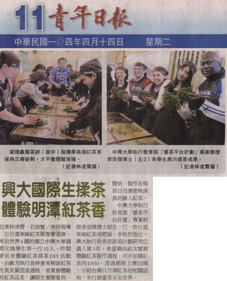 【媒體報導】興大國際生揉茶 體驗明潭紅茶香