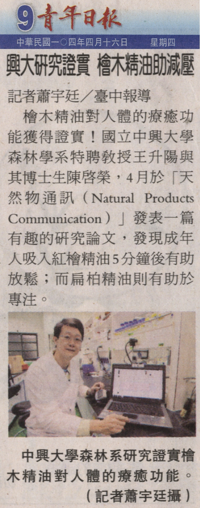 【媒體報導】興大研究證實 檜木精油助減壓