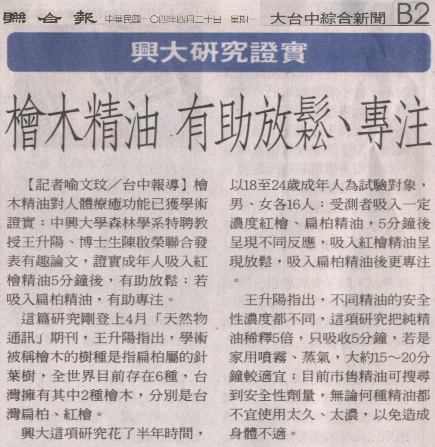 【媒體報導】檜木精油 有助放鬆、專注