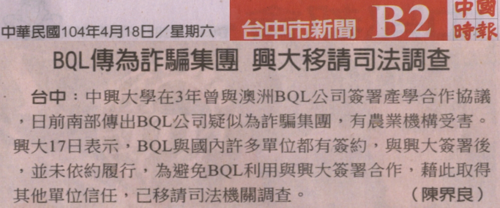 【媒體報導】BQL傳為詐騙集團 興大移請司法調查