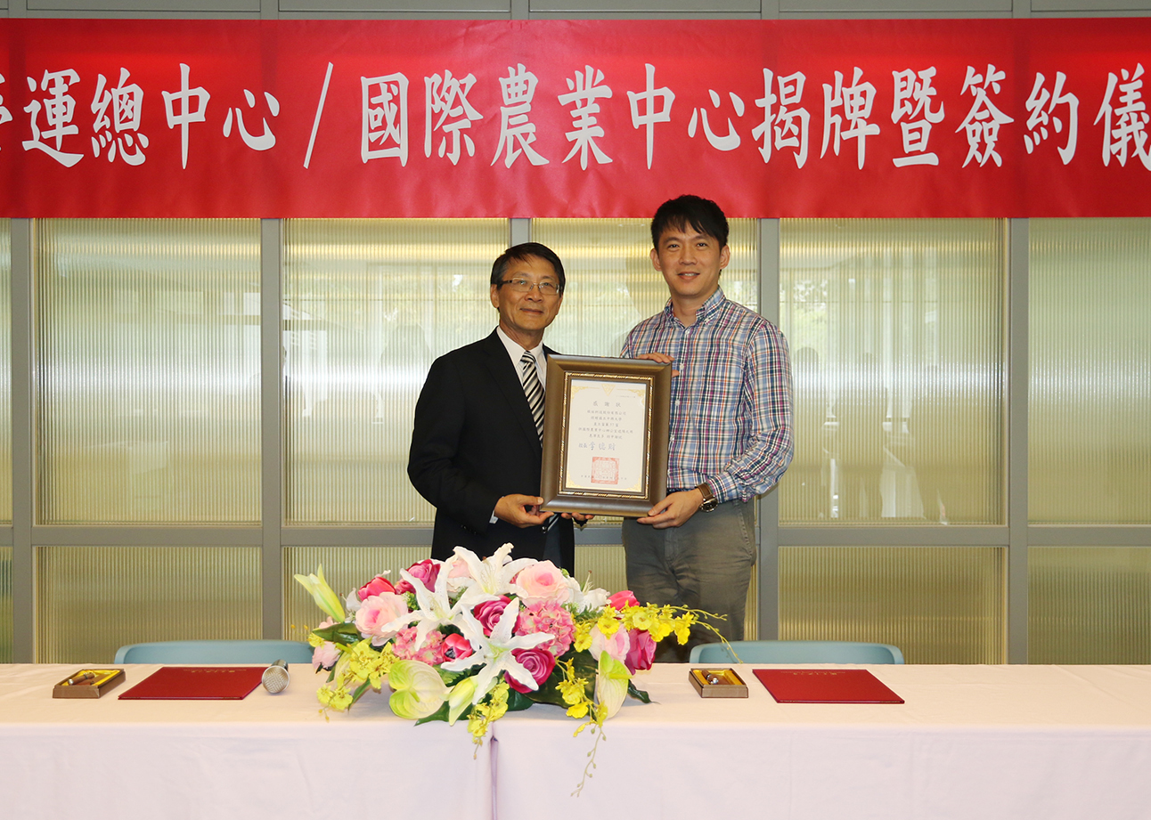 【圖文/媒體公關組】國立中興大學4月30日上午舉辦國際農業中心、產學營運總中心揭牌儀式,並與禾鑫高科股份有限公司簽署合作意向書,致贈巨大傢飾感謝狀。未來兩中心將正式進駐國農大樓,整合校內資源,由國農中心推動國內外農業學術交流,產學營運總中心活化學校資產,提升營運效能。