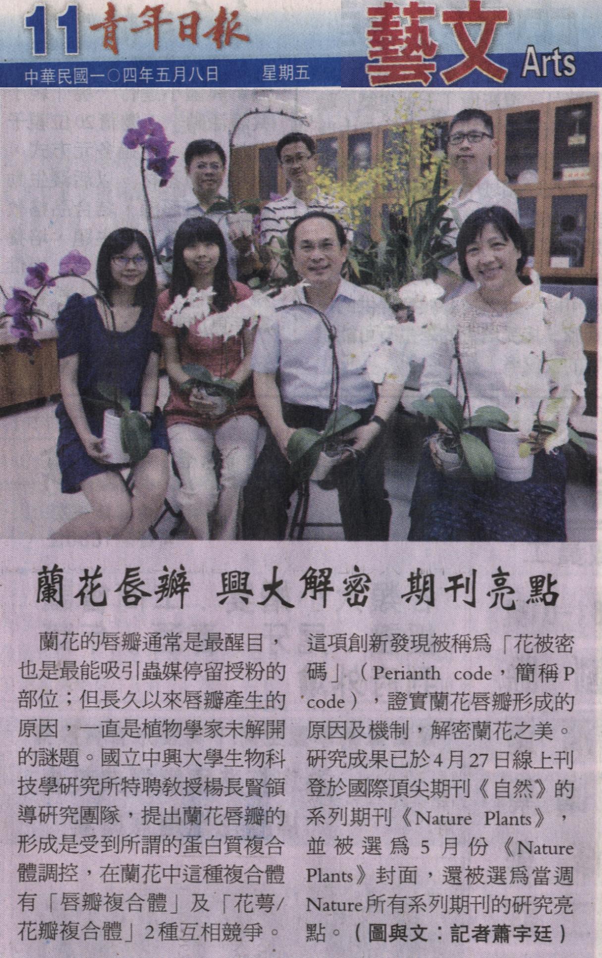 【媒體報導】蘭花唇瓣 興大解密 期刊亮點