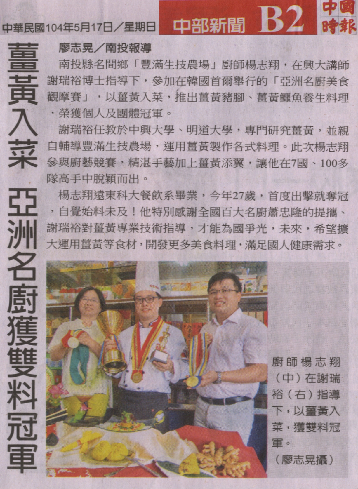 【媒體報導】薑黃入菜 亞洲名廚獲雙料冠軍
