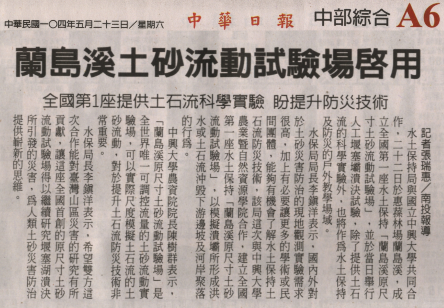 【媒體報導】蘭島溪土砂流動試驗場啟用