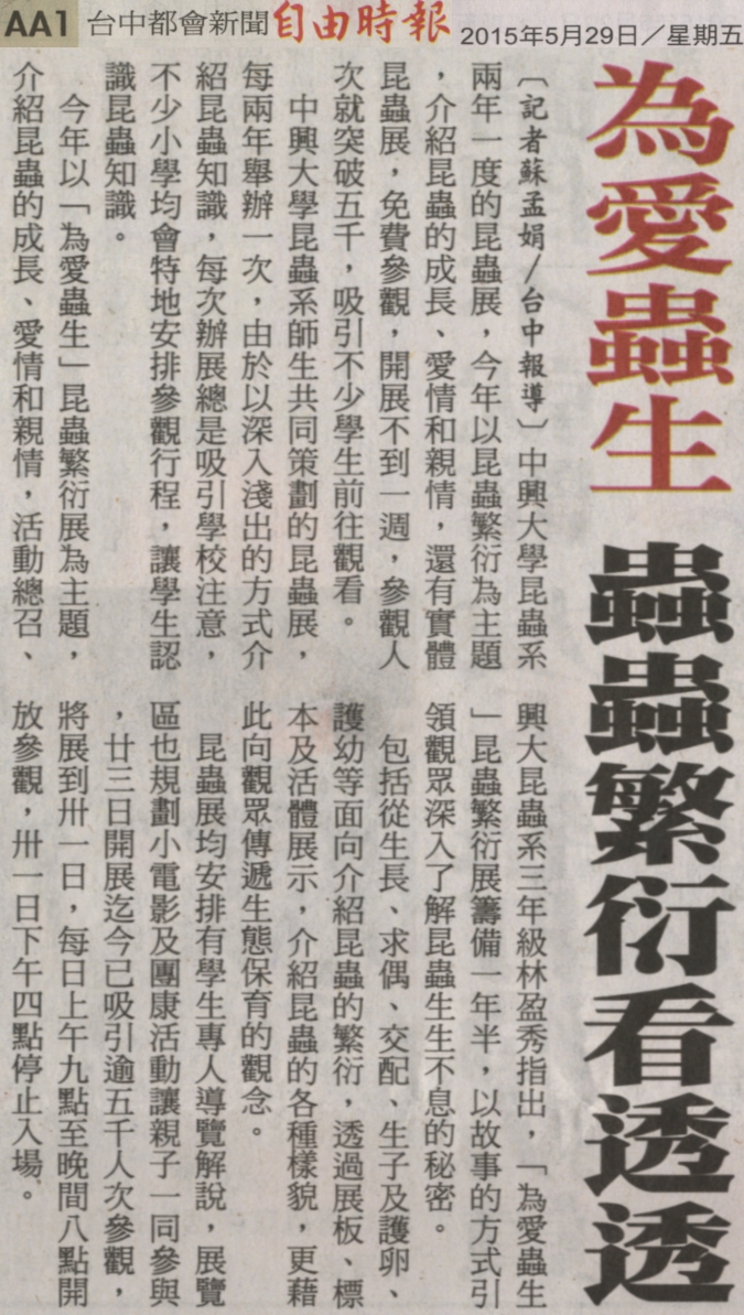【媒體報導】為愛蟲生 蟲蟲繁衍看透透
