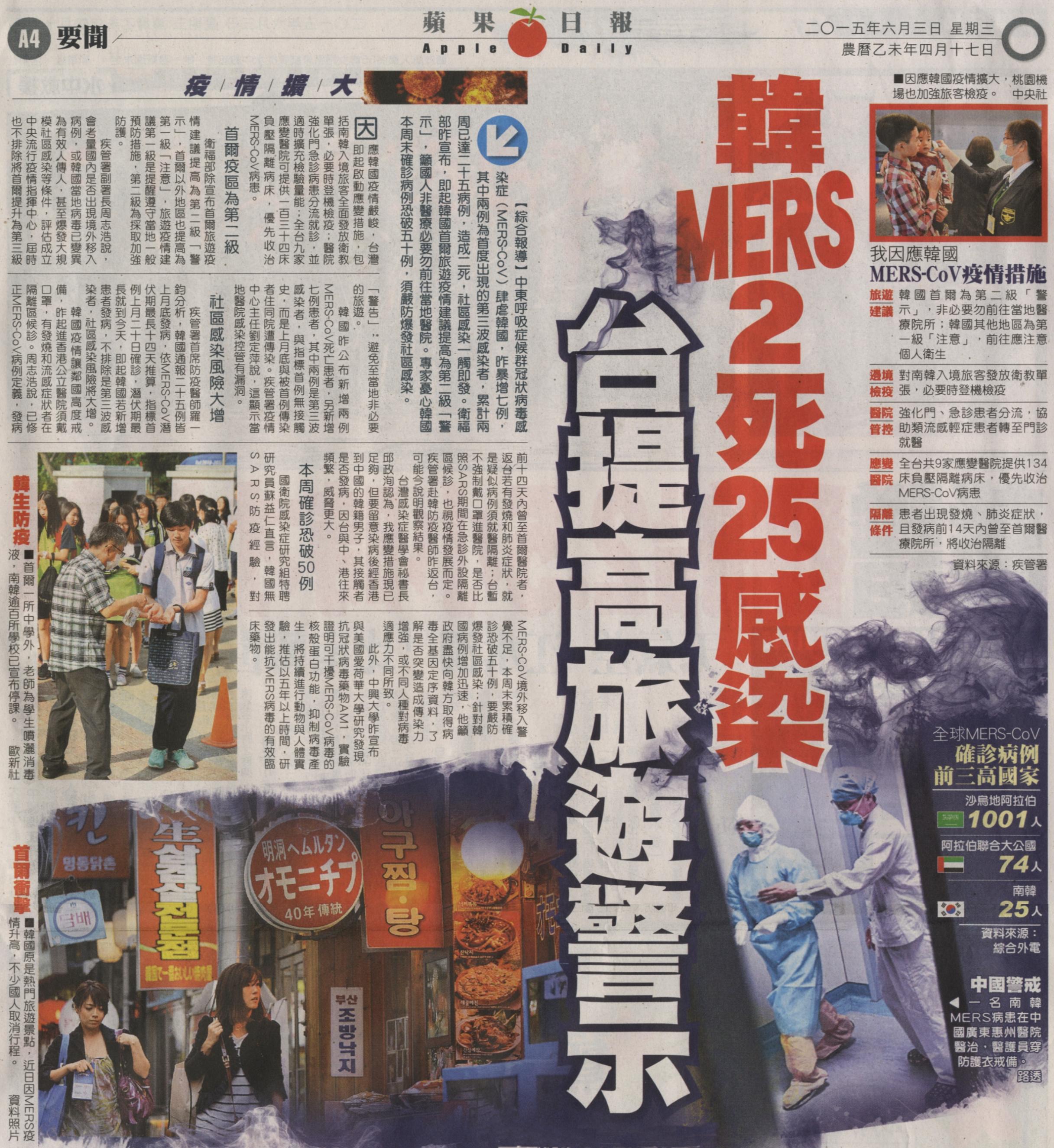 稿源:2015-06-03/蘋果日報/A4/要聞