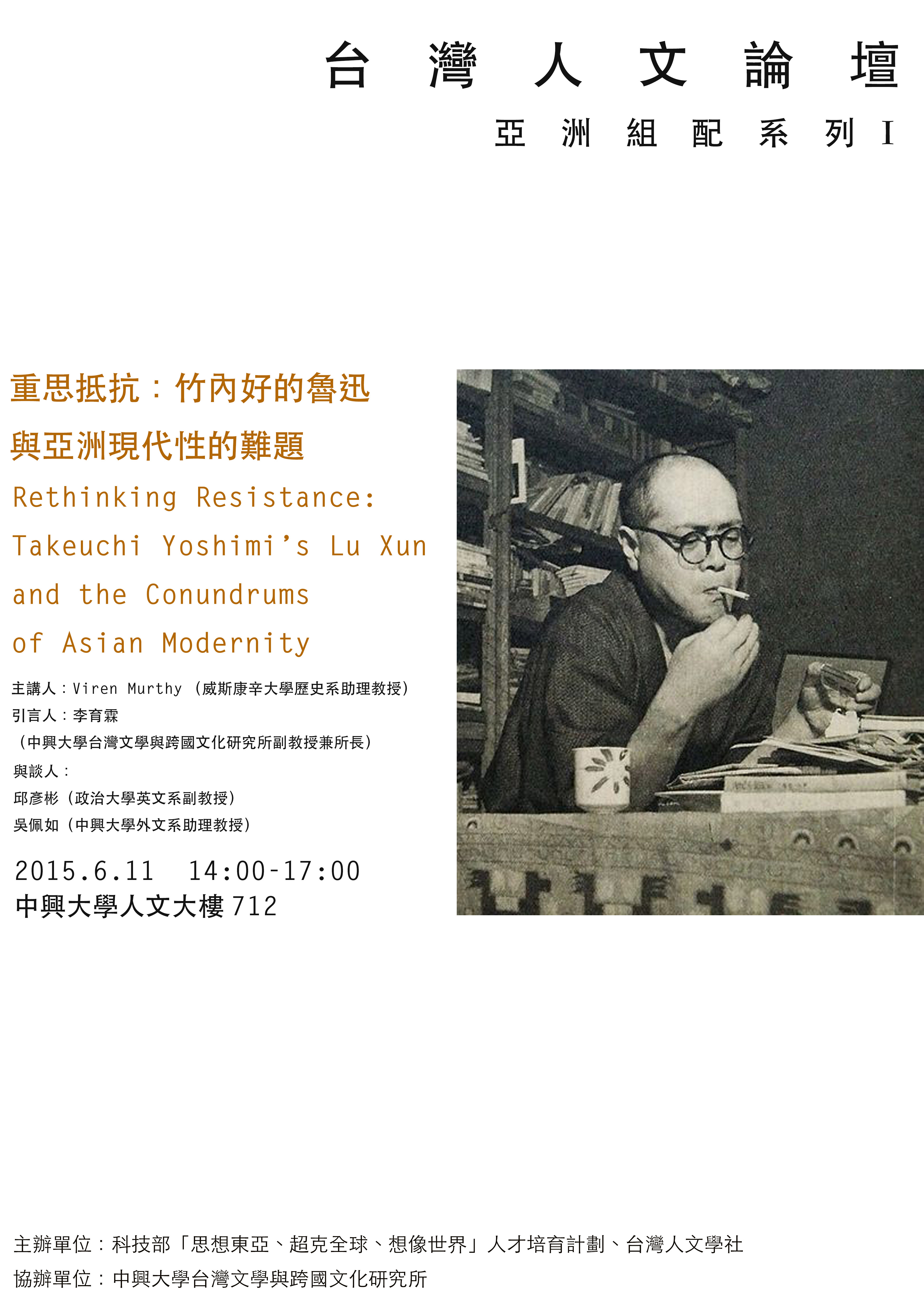 【「台灣人文論壇‧亞洲組配系列Ⅰ」重思抵抗:竹內好的魯迅與亞洲現代性的難題】演講海報.jpg