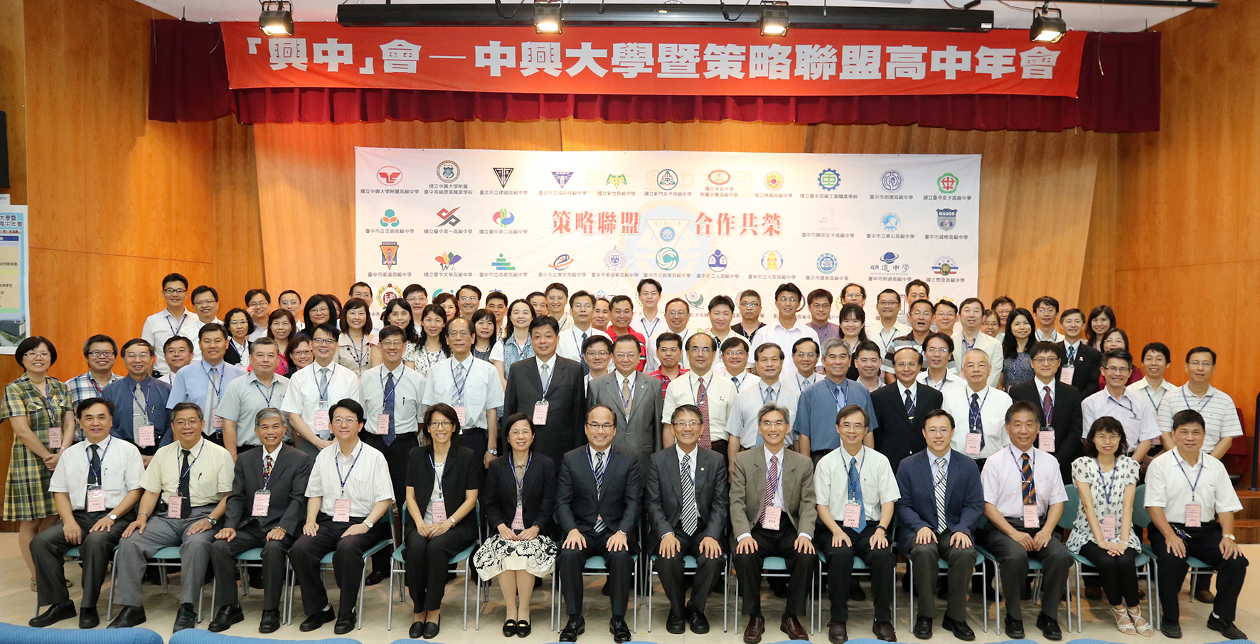 興大與高中職策略聯盟共組「興中會」已邁入第四年,目前共有53所學校加入結盟,6月4日上午舉辦簽約儀式,與會校長大合影。