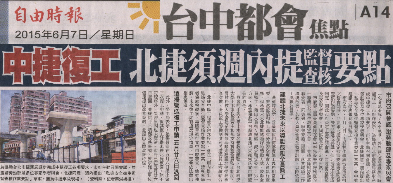 稿源:2015-06-07/自由時報/A14/張菁雅/台中