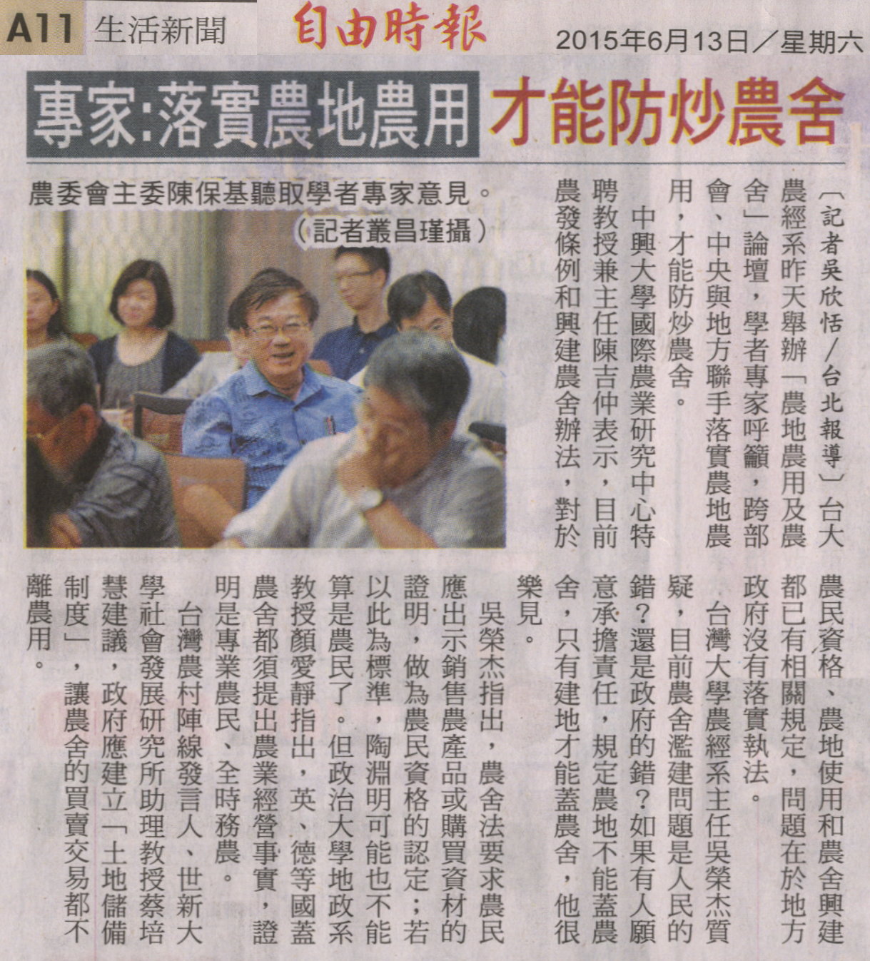 【媒體報導】專家︰落實農地農用 才能防炒農舍