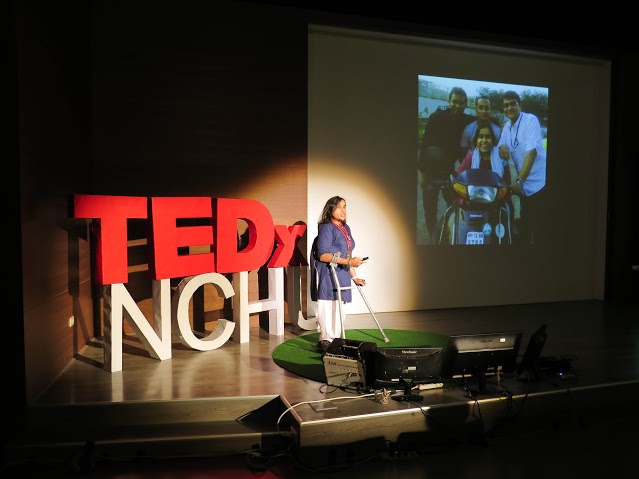 TED x NCHU首場年會6月6日在中興大學舉辦,九位講者精彩開講。 演者Somya用自身的生命故事與觀眾分享如何面對困境,即便身體不便,也可過得精彩。