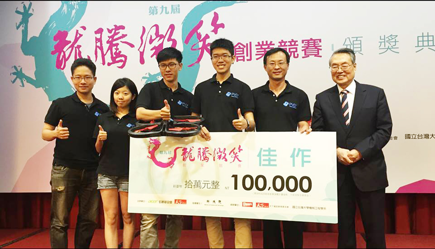 由國立中興大學土木系楊明德教授指導,五位興大生組成的創業團隊「PVD+」,以「DONG-體感控制引擎」主題,6月23日獲榮獲第九屆龍騰微笑創業競賽佳作。該賽事是國內最高獎金的創業競賽,此屆共有178隊參與,賽程長達8個月,PVD+以獨特的創新技術,從眾多創業團隊中脫穎而出。