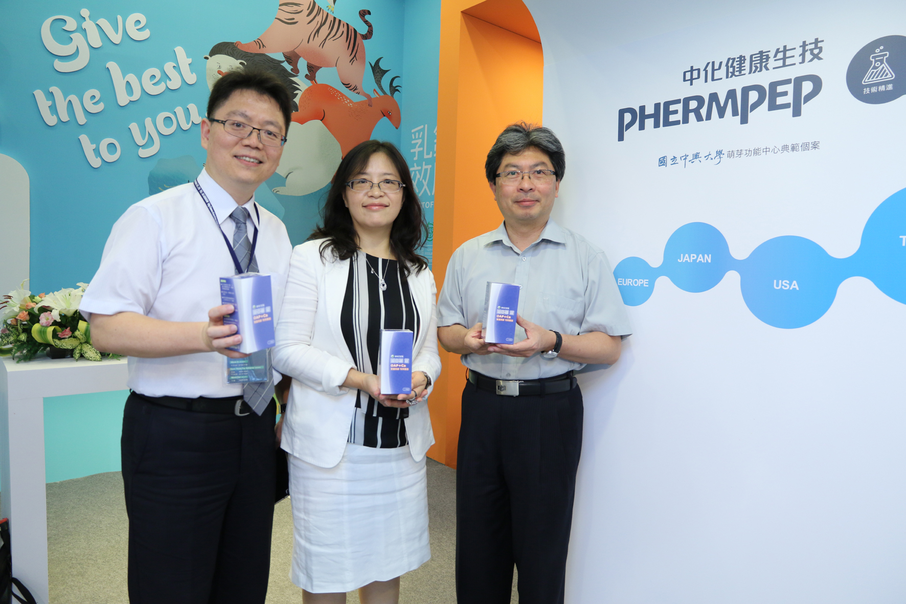 中化健康生技新創公司是由中興大學、大葉大學與中國化學製藥公司所組成的產學聯盟。中興大學與大葉大學的研究團隊開發關鍵胜肽產程技術,中化製藥公司協助進行生產與劑型等方面之改善,同時為落實研發成果商品化的目標,中興大學萌芽功能中心輔導團隊提供專利智財佈局、財務規劃與營運計畫書撰寫等諮詢,協助此科研團隊尋求資源挹注,使其順利完成第一階段營運資金募集,於今年正式成立中化健康生技股份有限公司(Phermpep Co., Ltd.)。