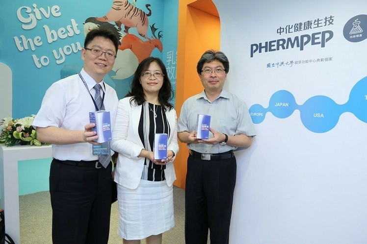 由中興大學萌芽功能中心所輔導的新創公司中化健康生技,首次展示開發十年、具預防醫學價值的胜肽素材-「克弗爾肽™」,克弗爾肽在調降血壓、心血管保護、促進骨質生成與提升骨密度等具有良好效果,且已取得台、美、歐盟、中國等十國專利。