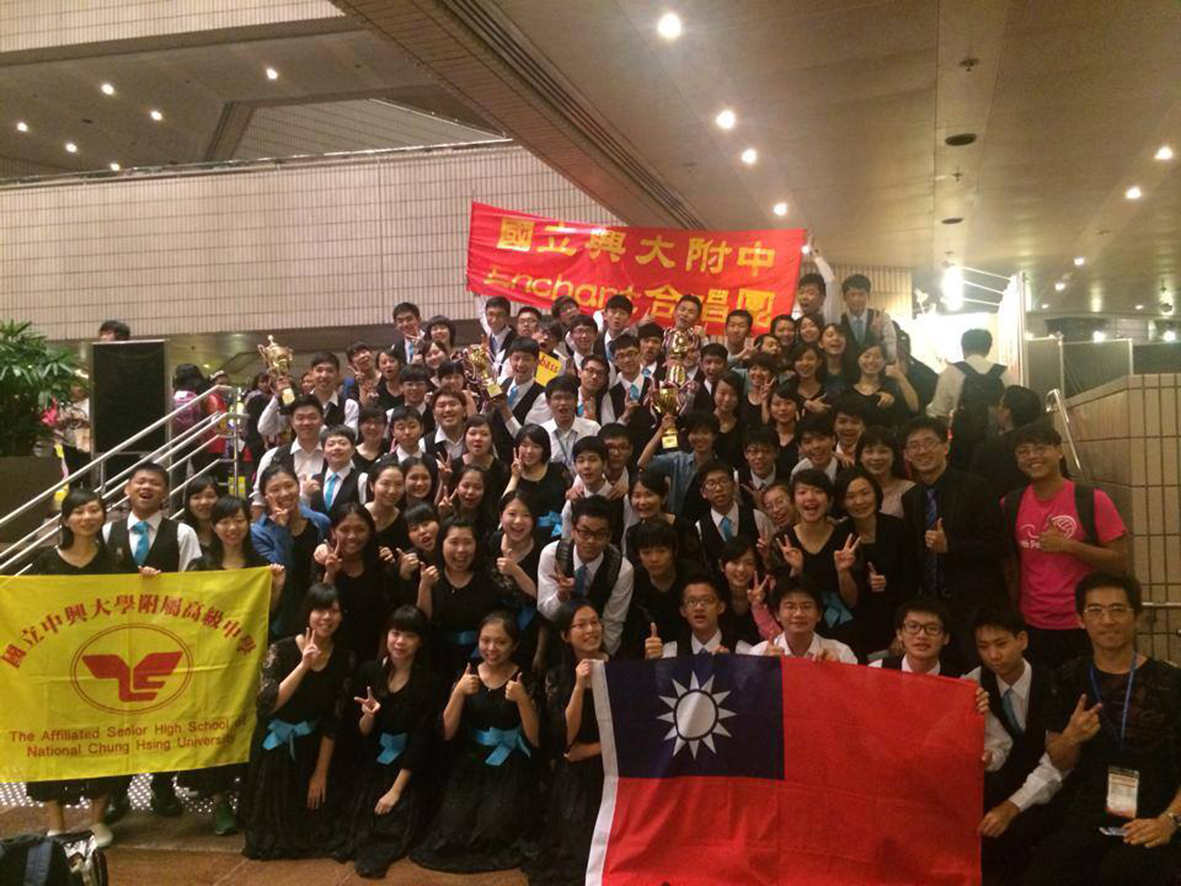 國立興大附中合唱團日前(7/13-18)代表台灣赴香港參加「世界青少年合唱大賽」,與來自全球22個國家53支隊伍同台較勁,榮獲民謠組及混聲合唱組雙項金牌,更在最後的決賽中勇奪最佳舞台效果及評審團大獎四項大獎。讓世界看見台灣青少年合唱的實力與可塑性。