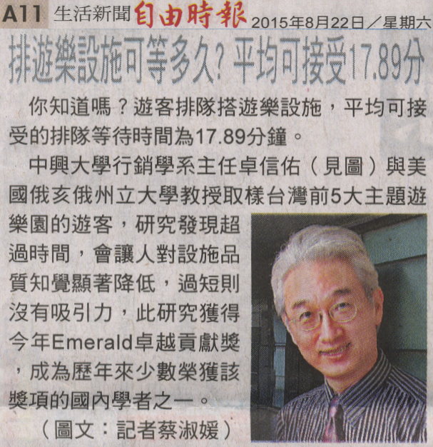 【媒體報導】排遊樂設施可等多久? 平均可接受17.89分
