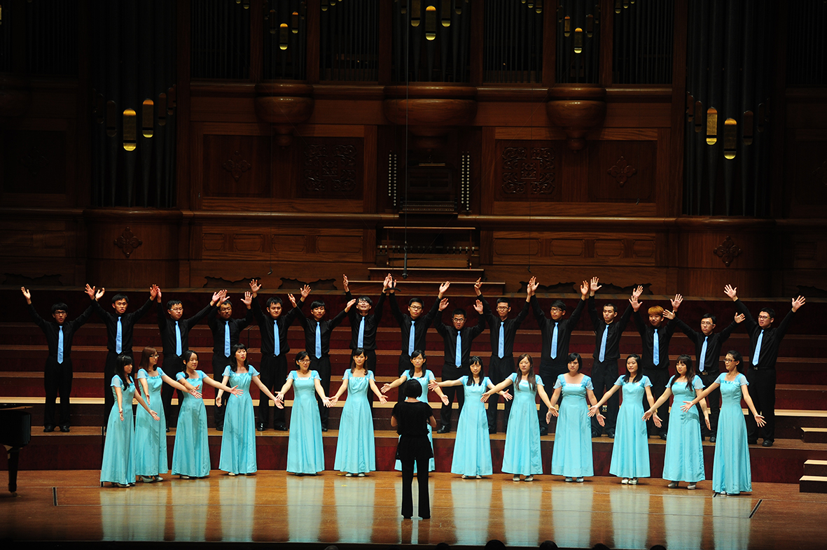 今年5月興大合唱團與臺北愛樂合唱團在中山堂聯演。
