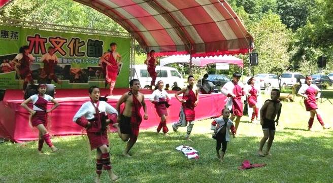 惠蓀木文化節賽德克巴蘭社青年舞團的原民勇士舞,及舞群中有3歲原民小弟弟葉子允,有板有眼的精彩演出,令觀眾都為之驚艷。(楊樹煌攝)