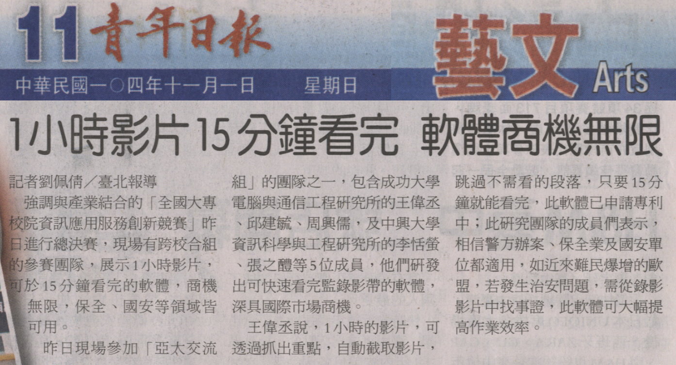 【媒體報導】大專資訊應用創新賽:1小時影片15分鐘看完 軟體商機無限