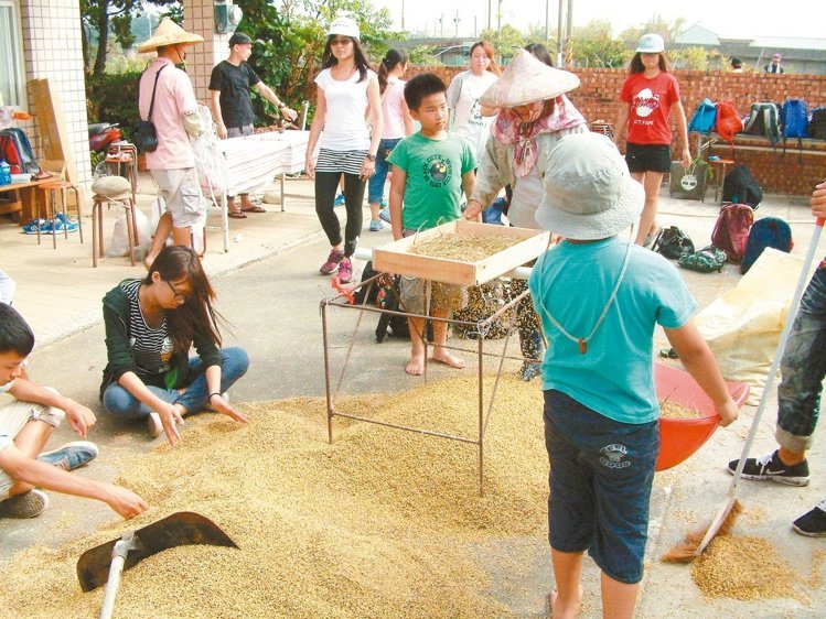 割稻、篩穀… 大學生苗栗體驗農事