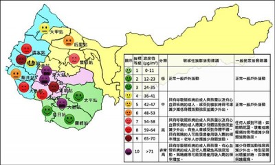 台中市近三週來已經面臨第三波空污紫爆,昨天在大里、西屯、東大空氣品質監測站檢出PM2.5濃度都達到紫爆最高十級危險程度,多數地區也呈現黃燈第四級至暗紅燈第九級的中高濃度,另空氣品質指標也呈現紅燈和紫燈,達到不良和非常不良程度。